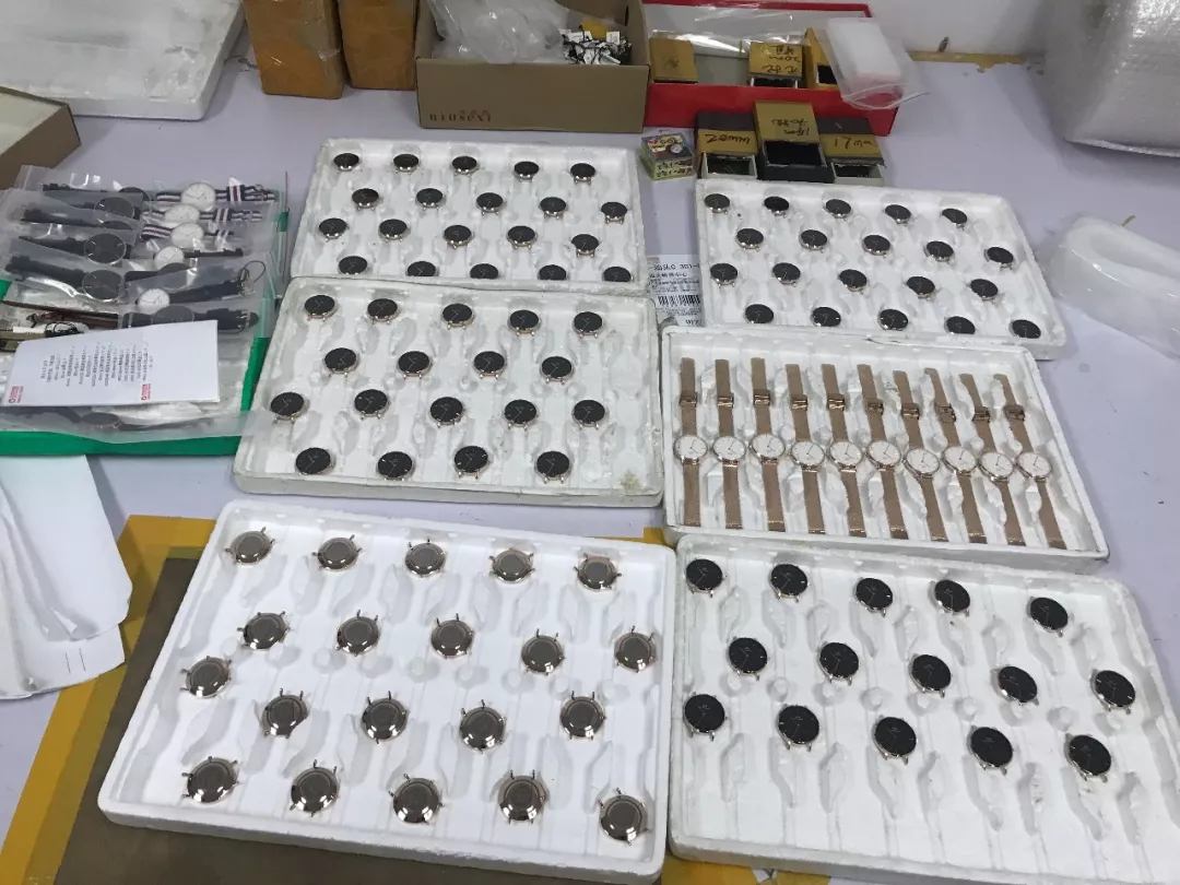 2018年6月21日,深圳市公安局經(jīng)偵支隊(duì)聯(lián)合市市場監(jiān)管部門開展打擊假冒DW品牌手表、FOREO等品牌潔面儀收網(wǎng)行動,共出動警力110人,查處窩點(diǎn)13個,刑拘犯罪嫌疑人12人?,F(xiàn)場查扣假冒DW品牌手表13500塊,表帶、表殼、后蓋等配件43000個以及包裝盒、標(biāo)簽12000余個,現(xiàn)場查扣假冒產(chǎn)品價值1200萬元人民幣,總涉案金額3000余萬元人民幣。查扣假冒各品牌美容產(chǎn)品、半成品和商標(biāo)標(biāo)識11798件,查扣假冒產(chǎn)品價值人民幣500萬元。經(jīng)查,上述犯罪團(tuán)伙在未經(jīng)注冊商標(biāo)所有人許可的情況下,擅自使用注冊的商標(biāo)圖案組裝、翻新假冒DW品牌手表、FOREO品牌潔面儀。經(jīng)商標(biāo)權(quán)利人鑒定,現(xiàn)場查獲的手表和美容儀為假冒其注冊商標(biāo)的產(chǎn)品。