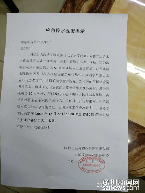 鹽田一小區(qū)水管爆裂1個(gè)月 接投訴后沙頭角街道3天完成修復(fù)!