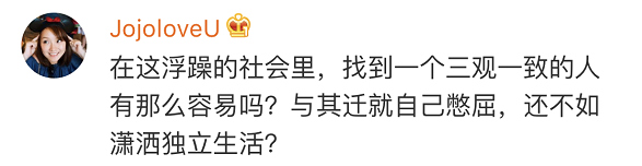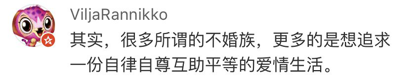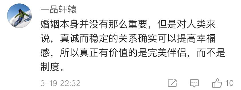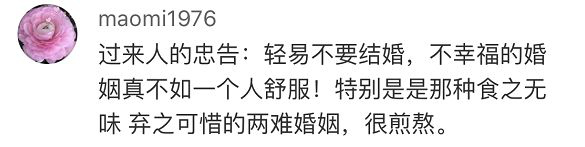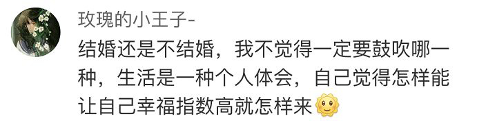 一定要遇到理想的結(jié)婚對象才會選擇結(jié)婚。事業(yè)排第一,婚姻排在最后。我進入婚姻的初衷是為了讓生活變得更好,而且婚姻更多還是一種合作關(guān)系,兩個人在一起能夠提高生活品質(zhì),經(jīng)濟方面相互幫助,降低生活成本,增強風(fēng)險抵抗能力。身邊朋友未婚的比較多,但有時看到已婚的朋友生活幸福,會有短暫的焦慮感,但更多地受到父母不幸的婚姻生活的影響,我對婚姻基本沒有什么正面的期望。