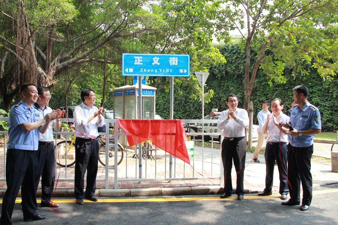 2014年,在福田區(qū)人大代表,龍崗公安分局黨委委員、副局長(zhǎng),時(shí)任福田派出所所長(zhǎng)劉鳳飛的倡議下,重新修繕了福田派出所門(mén)前這條長(zhǎng)73米,坑洼不平、年久失修的無(wú)名路,并通過(guò)法定程序?yàn)檫@條路起了一個(gè)響亮的名字:正義街,寓意警民同心,共同維護(hù)深圳社會(huì)正義。