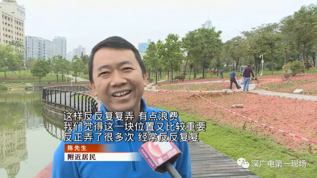 深廣電第一現(xiàn)場(chǎng)2019年3月25日訊 道路反復(fù)開(kāi)挖是廣大市民對(duì)于城市建設(shè)過(guò)程中最不滿意的一種現(xiàn)象。除此之外,把公園里面的綠地來(lái)回折騰也很容易引起人們的質(zhì)疑,最近就有觀眾向《第一現(xiàn)場(chǎng)》反映。中心公園里的一塊草坪,反復(fù)折騰快半年了也沒(méi)弄出個(gè)模樣來(lái)這到底是要搞哪出?