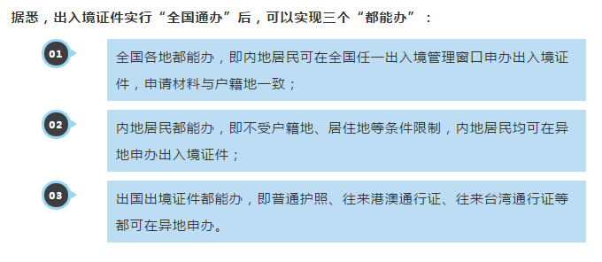 4月1日起,中華人民共和國普通護照、往來港澳通行證、往來臺灣通行證等出入境證件實行“全國通辦”。