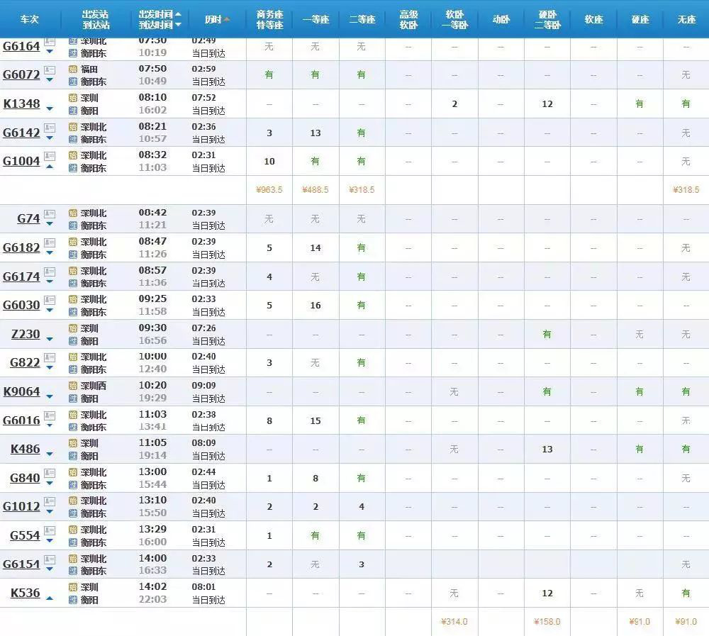 從深圳到衡陽,最快是2小時(shí)31分,票價(jià)最低為123元。
