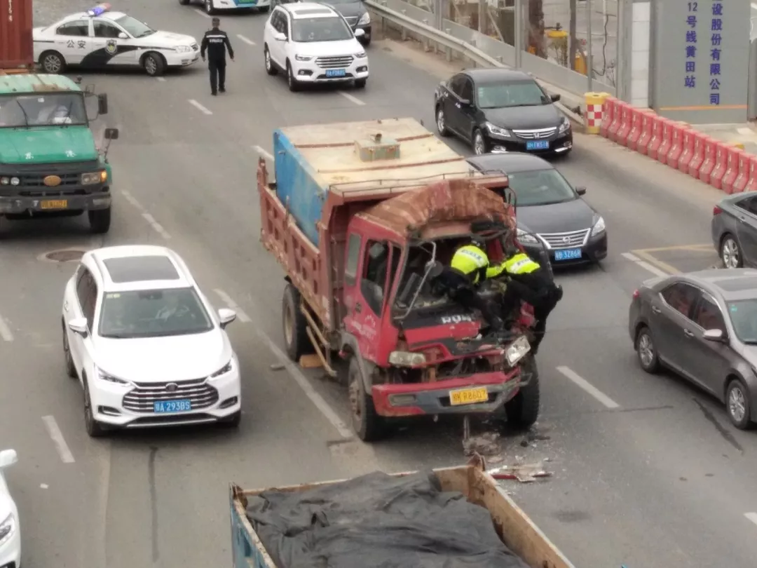 5分鐘,成功施救。經(jīng)過(guò)努力,交警成功將司機(jī)從車輛前窗救出,并扶至路邊等待救護(hù)車。