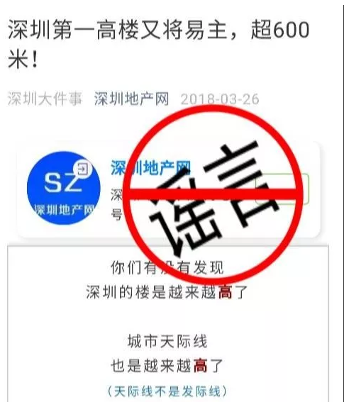 深廣電第一現(xiàn)場2019年4月5日訊 最近有報道稱,深圳第一高樓即將易主。難道這也意味著新的摩天大樓拔地而起了?這則刷屏大家朋友圈的消息今天被證實為謠言!