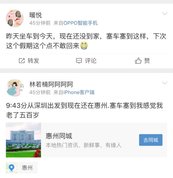 有坐大巴的朋友因為塞車時間遠超預期,遇上手機快沒電,心急不已,只能斷斷續(xù)續(xù)地開了又關機,以便與接他的家人保持聯(lián)系又留住最后一點電量。而家人也在當?shù)乜h城等了他四五個小時。