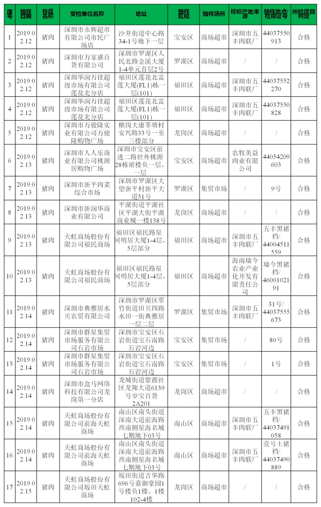 深圳最新一期菜肉抽檢結(jié)果出來了!趕緊來看
