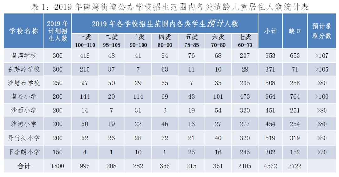 2019年南灣街道公辦學(xué)校招生范圍內(nèi)各類適齡兒童居住人數(shù)統(tǒng)計表