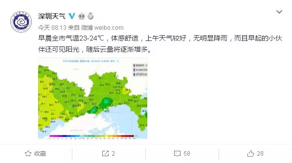 深圳新聞網(wǎng)2019年4月18日訊 今日天氣:陰天間多云,午后轉(zhuǎn)(雷)陣雨,夜間降雨趨于頻密;氣溫22-27℃