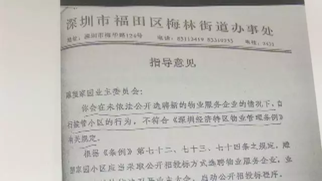 朱先生說,那名業(yè)主在發(fā)出他的舉報信的同時,還發(fā)了一張梅林街道辦的指導意見: