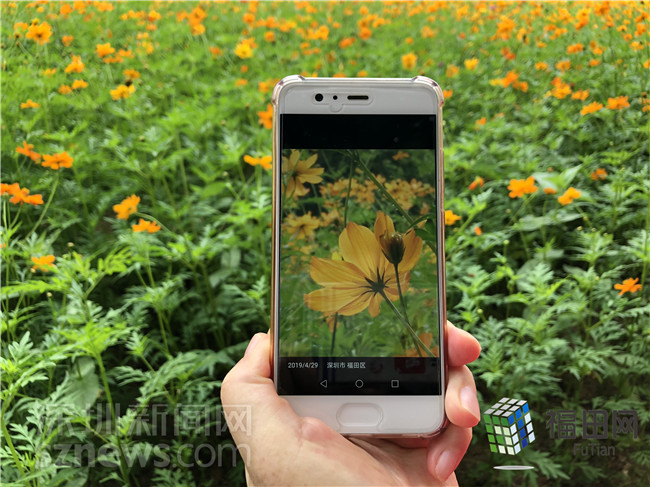 市民用手機(jī)拍下花朵后準(zhǔn)備發(fā)到朋友圈給大家分享。