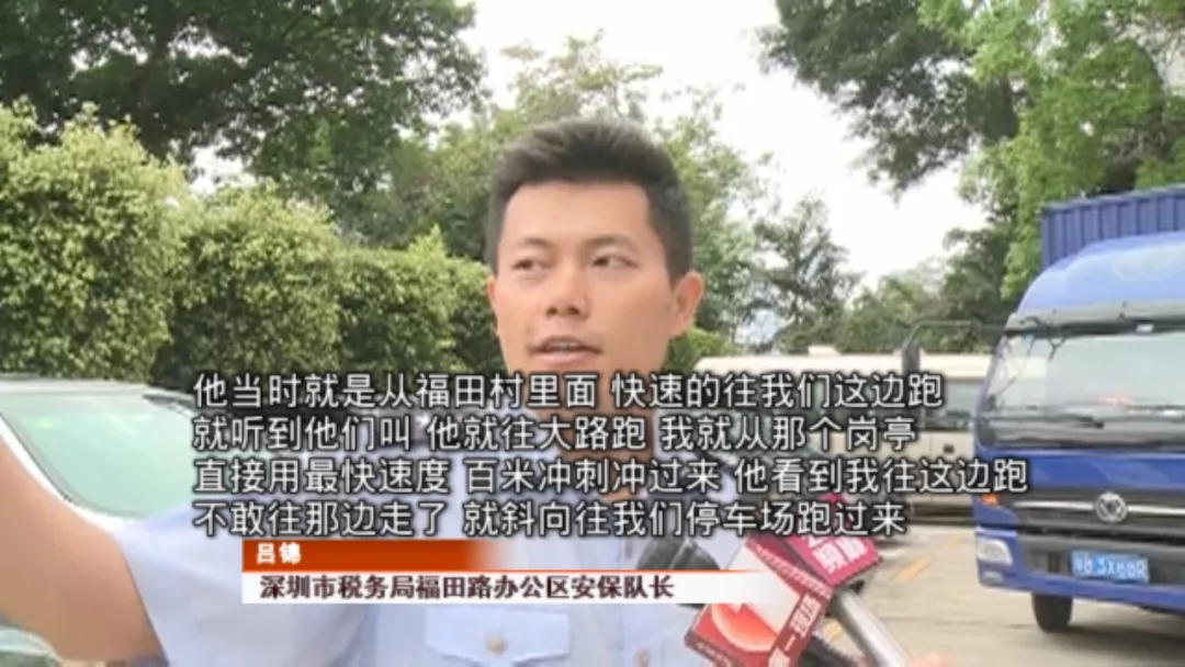 當(dāng)天早上,深圳市稅務(wù)局福田路辦公區(qū)的安保隊(duì)長(zhǎng)呂錦像往常一樣,正在崗位上值著早班。突然聽(tīng)到外面一陣騷亂,他趕忙起身查看情況。