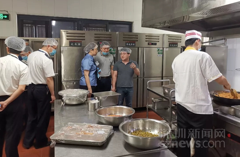 聯(lián)合檢查組進入食堂后廚進行檢查(深圳市人民檢察院供圖)