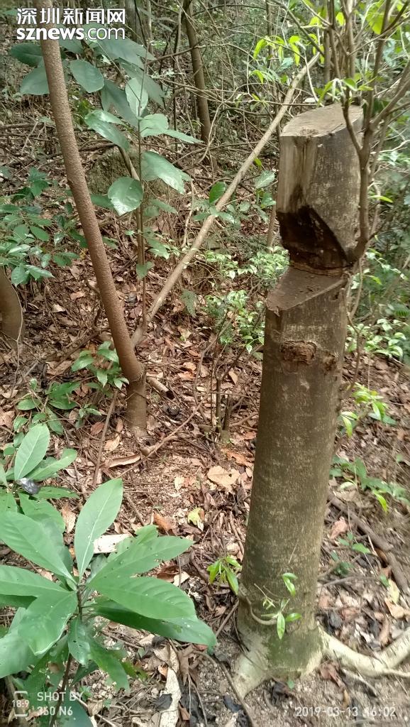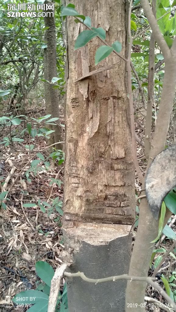 該網(wǎng)友提及的應(yīng)人石村位于深圳石巖,從地圖上看,其“后山”與羊臺(tái)山森林公園連為一體,是附近居民閑暇時(shí)度假踏青的重要選擇。據(jù)了解,網(wǎng)友“詩奴L”于今年3月中旬上山游玩,游玩途中發(fā)現(xiàn)原本茂盛的野生沉香樹大多遭人砍伐?!安环ǚ肿痈F盡一切手段,用鉆、削、劈、鋸等來對(duì)沉香樹進(jìn)行摧殘,這簡(jiǎn)直是屠殺式的洗劫!”該網(wǎng)友表示,看到這么多野生沉香樹被殘暴砍伐,真地讓人很氣憤。