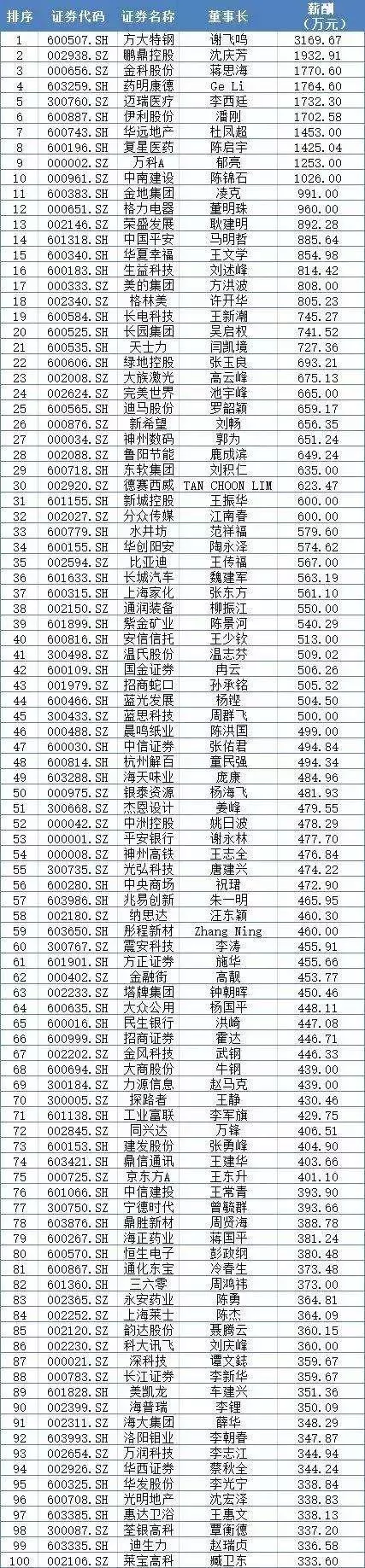 董事長(zhǎng)平均薪酬過(guò)百萬(wàn)元,