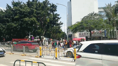 而百合外國語學校門前卻人山人海