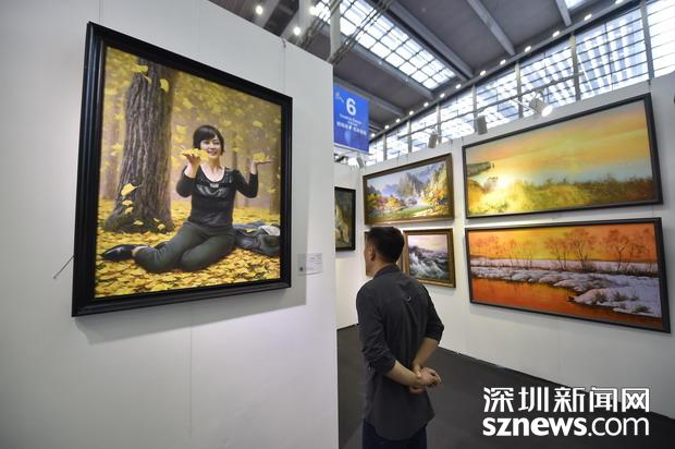 國(guó)內(nèi)外知名藝術(shù)家展區(qū),市民在觀賞作品