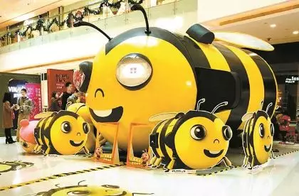 1號(hào)館福田展位的大蜜蜂型動(dòng)感球幕影院“蜜達(dá)”。深圳晚報(bào)記者 李京蔚 攝