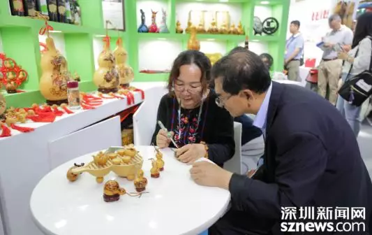 葫蘆刻繪展區(qū),傳承人在介紹葫蘆畫的繪制。深圳新聞網(wǎng)記者 潘潤華 攝