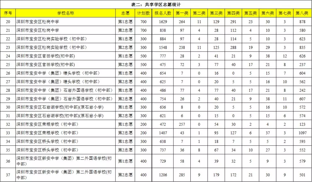 表二:共享學(xué)區(qū)志愿統(tǒng)計