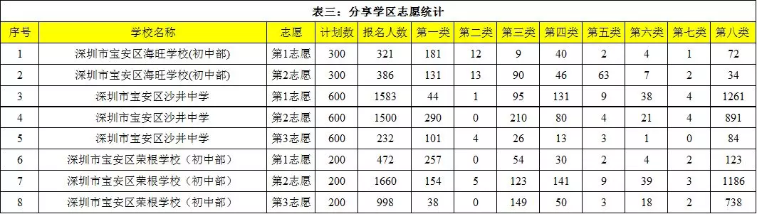 表三:分享學(xué)區(qū)志愿統(tǒng)計