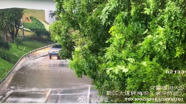 受暴雨影響,深圳部分路段交通中斷