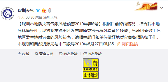 深圳市地質(zhì)災(zāi)害氣象風(fēng)險預(yù)警2019年第6號
