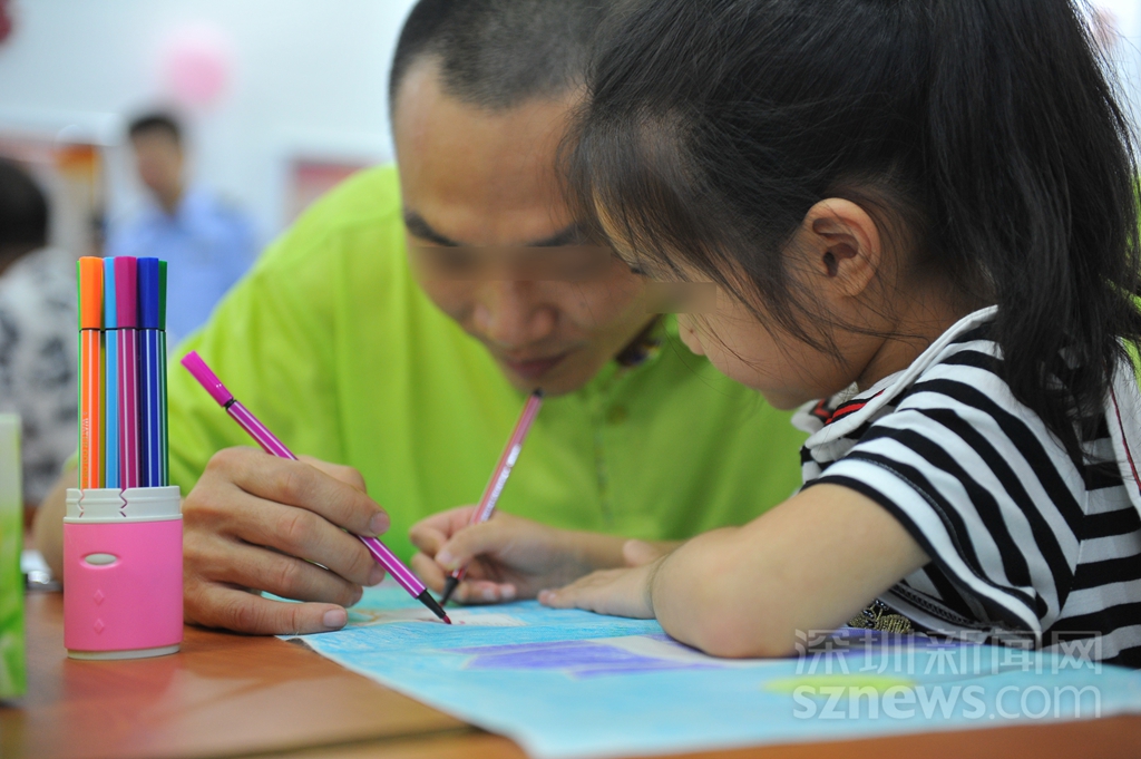 三歲半的圓圓自出生以來從未見過爸爸張某,這次在獄內(nèi)相見,一開始對身邊爸爸滿是錯愕,完全把他當成了陌生人,在媽媽的鼓勵下,才慢慢有了親情上的觸碰。張某把圓圓摟在懷里,眼睛從未離開過女兒,一會摸摸女兒的胳膊,一會給女兒拆零食,也陪著她做做涂鴉??沙诉@些,他暫時卻找不到和女兒交流更好的辦法。