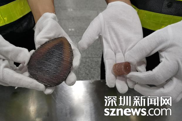 5月13日,一名30歲左右的男性旅客自福田口岸旅檢大廳入境,海關(guān)關(guān)員發(fā)現(xiàn)該男子行李不多,手里拎著一個塑料袋,神情有些緊張,有意躲避海關(guān)檢查,便將其列為挑查對象。經(jīng)檢查,關(guān)員在當(dāng)事人攜帶的塑料袋內(nèi)查獲疑似犀牛角制品。