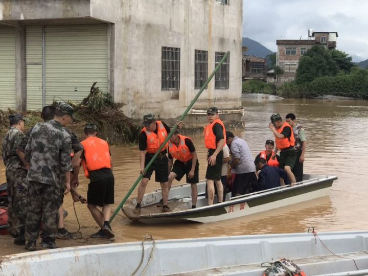 10日10時,受暴雨影響,連平縣上坪鎮(zhèn)最大降雨量達300毫米,導致上坪中心小學附近100多名群眾被洪水圍困。武警河源支隊緊急出動46名官兵攜帶沖鋒舟、救生衣等救援器材,分兩路趕赴現(xiàn)場救援,救援部隊開進過程中遇受災群眾多次求救,先后救出8名危難群眾。