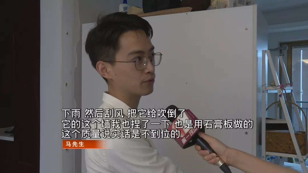 昨天上班的時(shí)候,馬先生沒(méi)有關(guān)上陽(yáng)臺(tái)門(mén),沒(méi)料到房間的隔墻竟然被大風(fēng)直接給吹翻了。