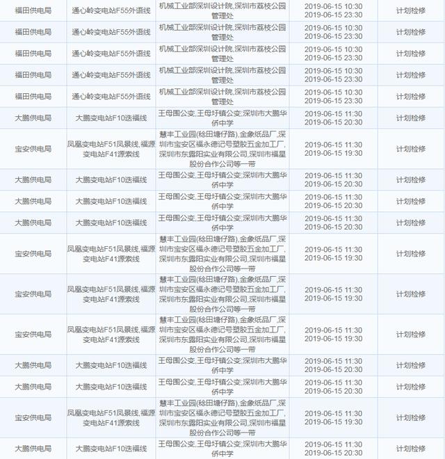 這個(gè)星期,深圳都有哪些地方計(jì)劃停電呢?南方電網(wǎng)發(fā)布深圳停電計(jì)劃。