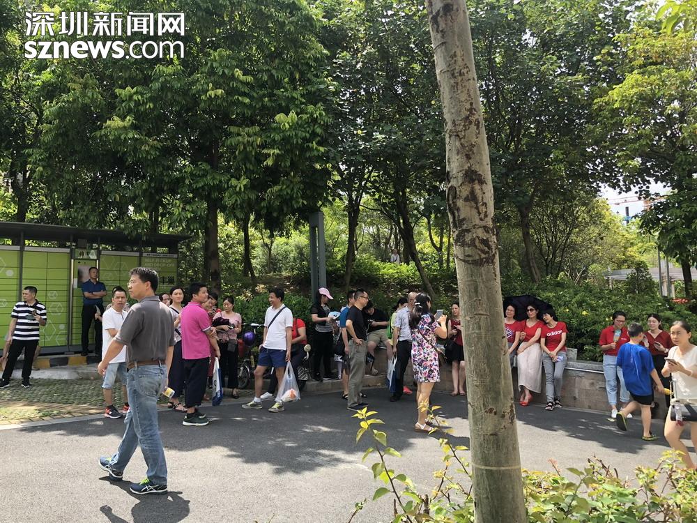 10:35時,2019深圳中考第一科語文即將結(jié)束考試,家長們在等候。