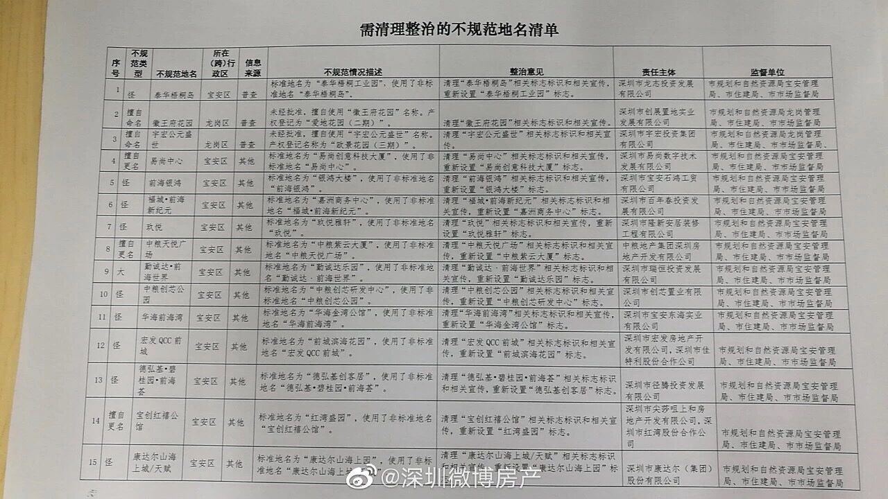 據(jù)了解,首批名單中,寶安是重災區(qū),共有24個在列;光明7個、龍崗坪山羅湖均為6個、龍華5個、福田4個、南山2個、鹽田和大鵬均為1個。