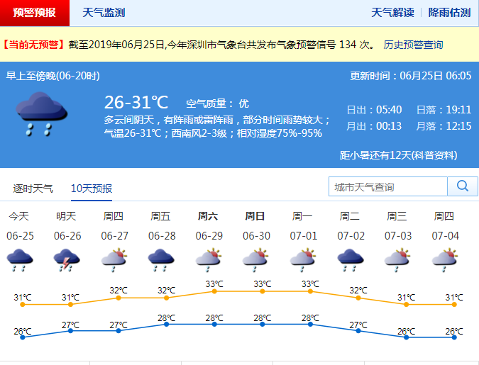深圳新聞網(wǎng)2019年6月25日訊 昨日,深圳啟動(dòng)暴雨IV級(jí)應(yīng)急響應(yīng),全市普遍出現(xiàn)大雨,局部暴雨,最高氣溫26℃左右,高溫天氣緩解。市氣象臺(tái)預(yù)測(cè),未來(lái)兩天風(fēng)力清勁,多陣雨,局部大雨。