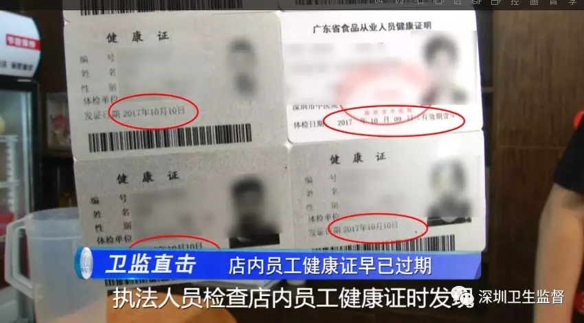隨后,執(zhí)法人員檢查店內(nèi)員工健康證,發(fā)現(xiàn)該店員工的健康證早已過期。