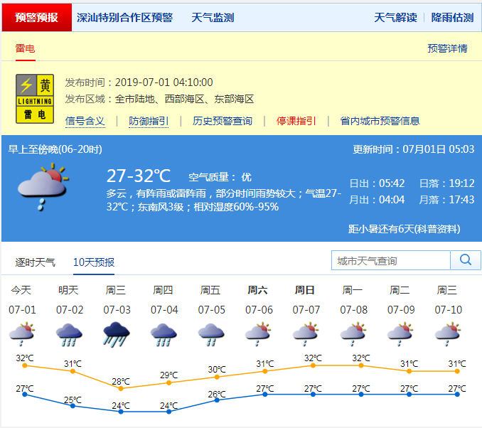 深圳市氣象臺于2019年07月01日07時45分在全市取消高溫黃色預(yù),延續(xù)前幾天的高溫天氣暫時緩解。