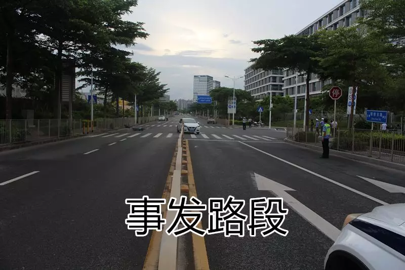事故現(xiàn)場位于坪山區(qū)錦繡東路與盧輝路交匯路口,道路為機動車道、普通路段的平直道路,路面完好、干燥,照明條件為夜間有路燈照明,干燥瀝青路面,交通信號方式為指示標線、指示標志,道路類型為一般城市道路。