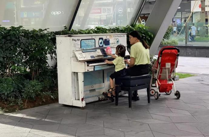 華強北街頭還擺放了公共鋼琴可供免費彈奏