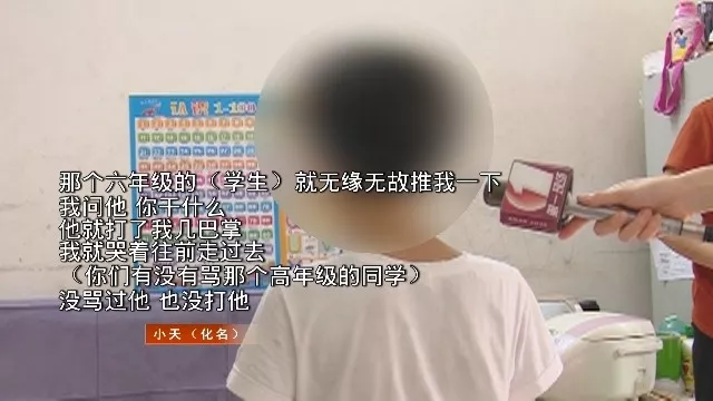 隨后記者前往了小詹所在的小學(xué)。邱校長表示打人者彬彬本身是一個自控力較弱的學(xué)生,他們此前也有進(jìn)行過多次批評教育,而這次事發(fā)在非上課時間的校外,他們也有立即介入對事情進(jìn)行了解,并且協(xié)調(diào)雙方進(jìn)行協(xié)商,在小詹出現(xiàn)應(yīng)激反應(yīng)后,他們也立馬聯(lián)系了心理醫(yī)生進(jìn)行輔導(dǎo)。
