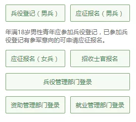 小編說:有些小伙伴看到這么多的菜單就有些懵了,其實(shí)不用緊張,如果你是第一次來的男生,直接從“兵役登記(男兵)”進(jìn)入頁面就可以了;否則就從“應(yīng)征報(bào)名(男兵)”進(jìn)入頁面;如果想報(bào)名招收士官,就從“招收士官報(bào)名”進(jìn)入頁面,不過,今年的招收士官貌似還沒開始
