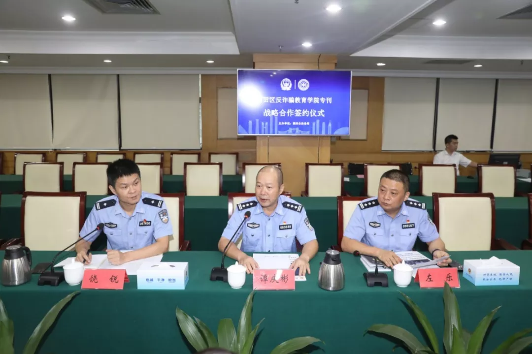 活動現場,福田分局分別與福田區(qū)委政法委、蓮花街道辦、北大深圳醫(yī)院、深圳外國語學校、中國郵政儲蓄銀行、聯想有限公司(深圳)、平安大廈物業(yè)、馬成時代廣場、卓越世紀廣場、山姆會員店、梅林農批市場、順豐快遞共12家單位和企業(yè)簽訂了《福田反詐騙教育學院??瘧?zhàn)略合作協(xié)議》。
