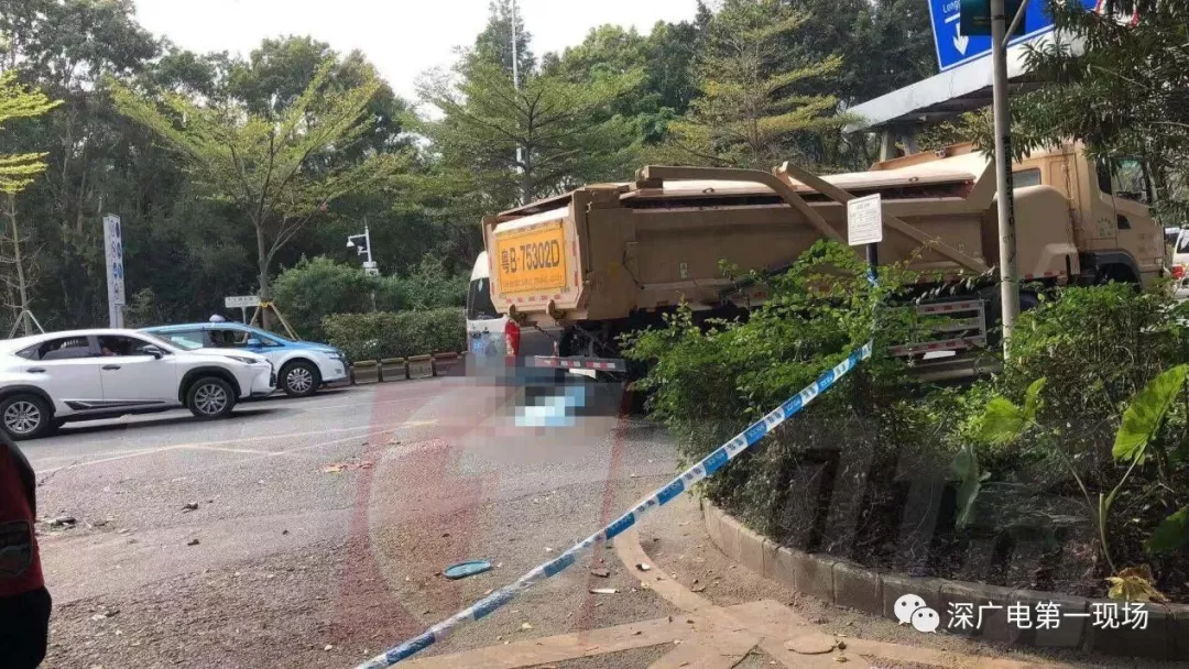 一輛滿載泥土的泥頭車與兩輪電動(dòng)車相撞