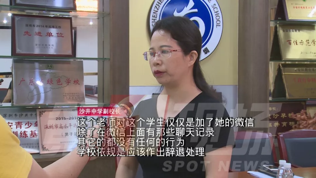 為詳細了解實際情況,記者來到了李先生女兒就讀的沙井中學,學校的副校長出面回應(yīng)稱,李先生反映的老師騷擾他女兒的情況確實存在,當事人屬于臨聘教師,去年9月到該校任教,目前已經(jīng)被校方開除。