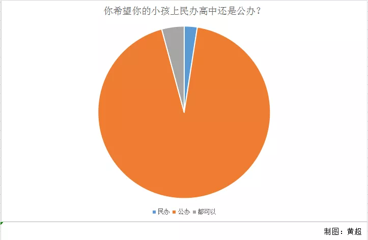94%的家長都選擇希望小孩上普高,93%的家長選擇希望上公辦普高。