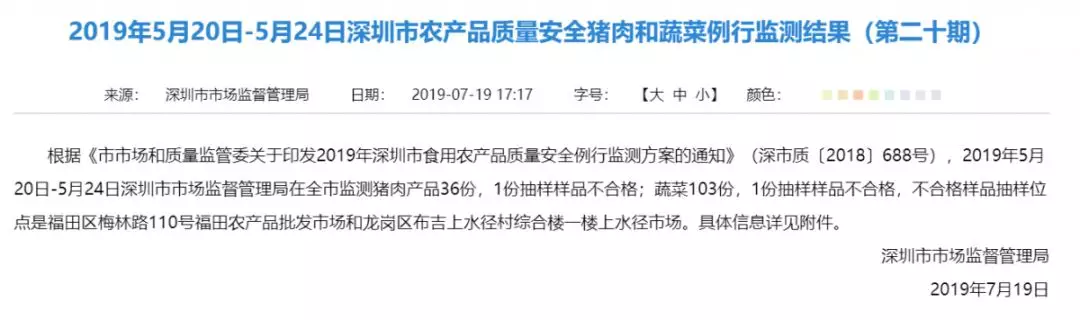 “2019食用農(nóng)產(chǎn)品抽檢第二十期”
