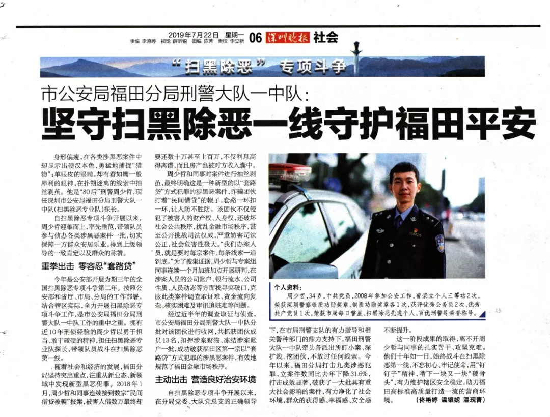 這一階段成果的取得,離不開周少哲與同事的扎實(shí)苦干、攻堅(jiān)克難。他們十年如一日,始終戰(zhàn)斗在掃黑除惡第一線,不忘初心、牢記使命,用“釘釘子”精神,啃下一塊又一塊“硬骨頭”,有力維護(hù)轄區(qū)安全穩(wěn)定,助力福田高標(biāo)準(zhǔn)高質(zhì)量打造一流的營商環(huán)境。