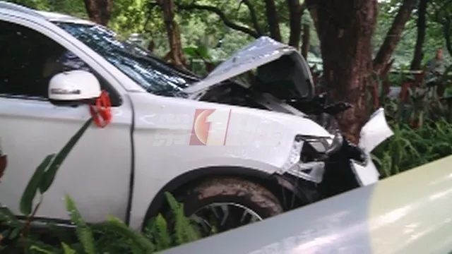 事情發(fā)生在7月21日下午3點(diǎn)50分,在事發(fā)現(xiàn)場(chǎng)可以看到一輛白色三菱汽車(chē)撞到了一棵樹(shù),車(chē)頭被撞得完全凹陷,支離破碎。