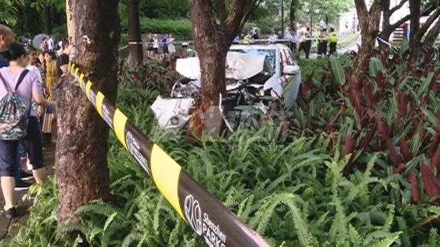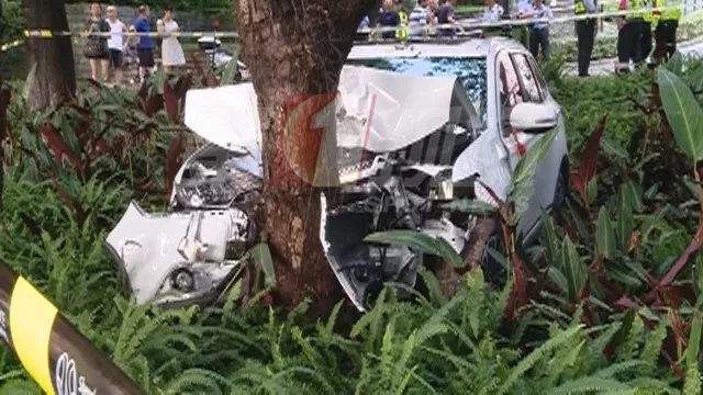 據(jù)現(xiàn)場(chǎng)目擊者稱當(dāng)時(shí)車(chē)輛直接碾過(guò)人行綠道并撞飛了兩個(gè)小孩,最終車(chē)頭撞向荷花塘邊的一棵大樹(shù)才停住,如果不是這棵大樹(shù)阻擋,這輛車(chē)很有可能會(huì)沖向荷花塘里。