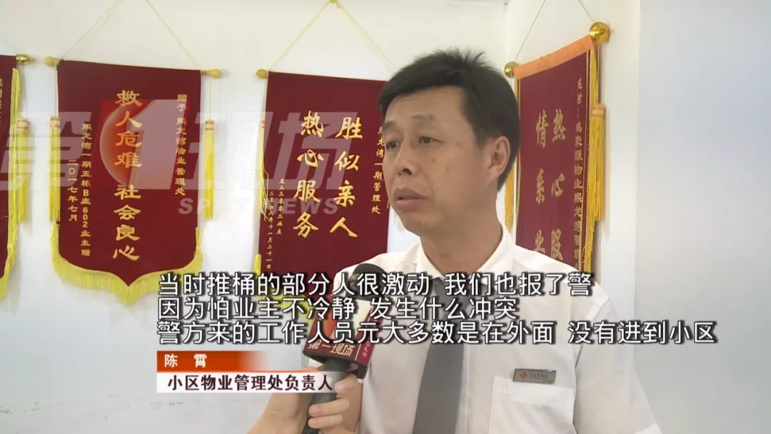 今天,記者來到管理處了解情況,管理處負(fù)責(zé)人陳先生告訴記者,昨晚之所以驚動(dòng)警方,是因?yàn)檫@些業(yè)主在表達(dá)訴求的過程中,做出了比較過激的行為,居然將小區(qū)設(shè)置的分類垃圾桶,直接推進(jìn)物業(yè)管理處。